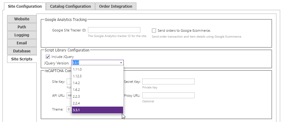 While it has always been possible to reference a distributed jQuery script library manually in a CyberStore page theme when buiding it out, an additional feature has been included that allows the CyberStore page engine to inject a configured jQuery version into every page <HEAD> in a Site.