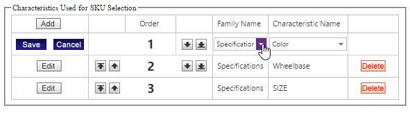 A button that, when clicked, allows you to arrange the SKU Characteristics.