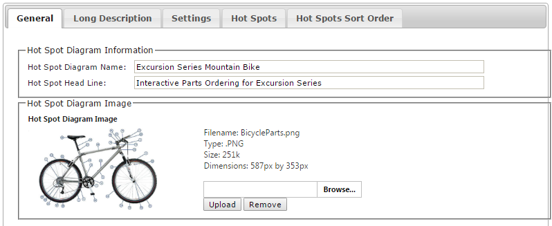 Use these tabs to maintain the key elements of a Hot Spot Diagram. Any changes modify how a Hot Spot Diagram is displayed on the website.
