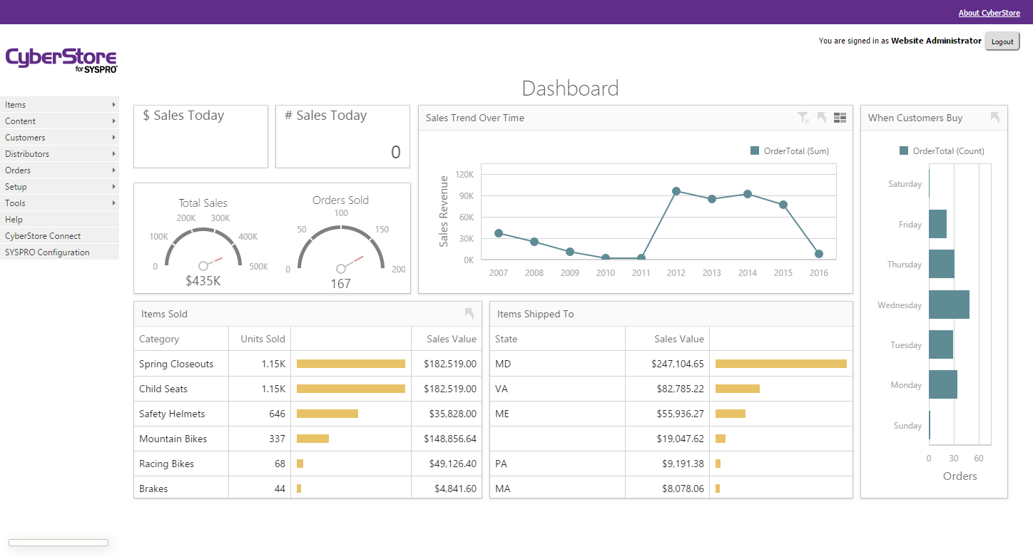 See the topics below to learn more about the functions and features of the Management Console available in CyberStore:
