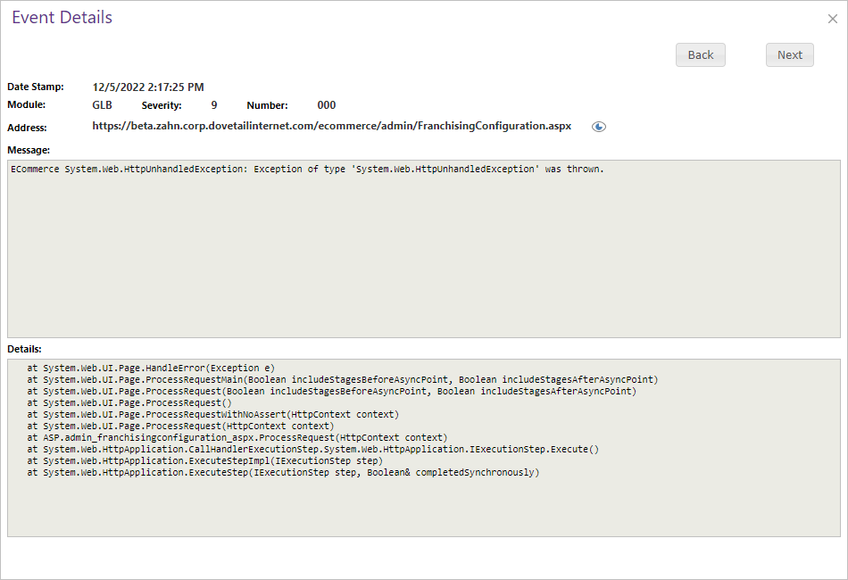 | Session Keys | A snapshot of the values in the application's Session at the time of the event. |