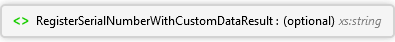 <xs:element minOccurs="0" maxOccurs="1" name="RegisterSerialNumberWithCustomDataResult" type="xs:string" xmlns:xs="http://www.w3.org/2001/XMLSchema" />